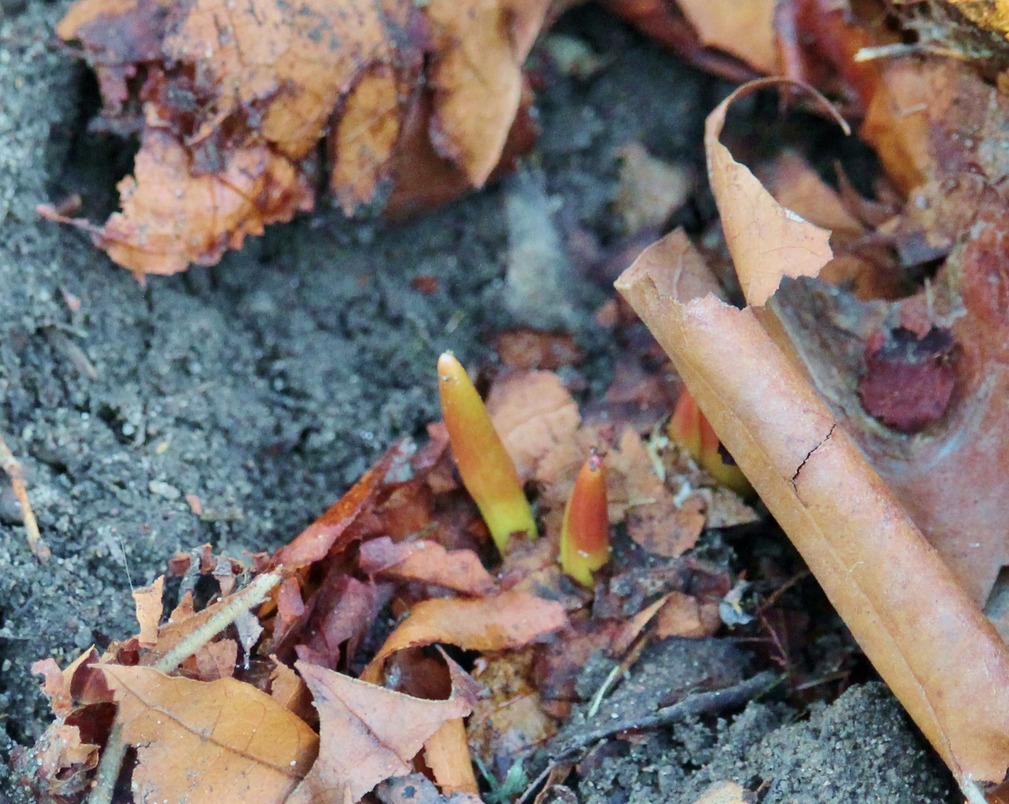 Could there be any other signs of life in this barren world? Already I was getting cold and the air around us still carried the prickling chill of late winter. But there, something is trying to make its way to the surface, something tiny but growing…. again we zoomed in among the decomposing matter.