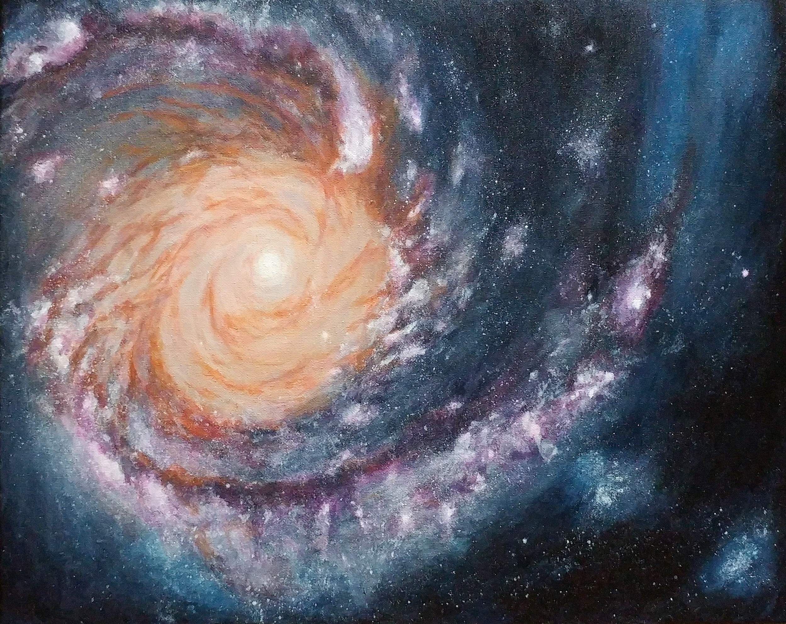 (Dear Reader: the first image was the very beginning of a painting; the second, its completion. As a photo reference, I used the image of a galaxy received by the Hubble telescope.)